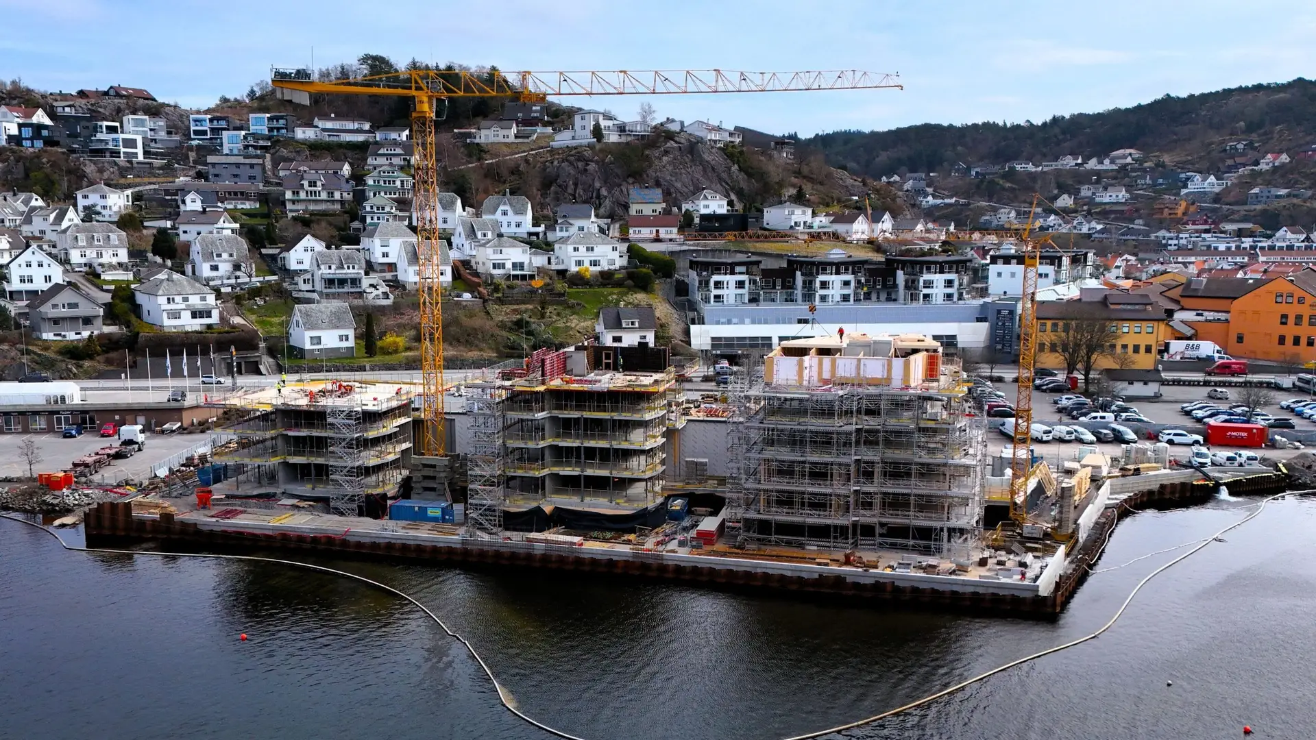 Ukentlige bilder og månedlige oppdateringsvideoer av byggeprosessen Feyer Brygge i Egersund.